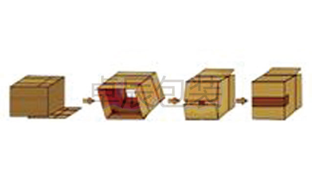 現(xiàn)時(shí)完成下部分膠帶粘貼,將疊成紙板的箱板