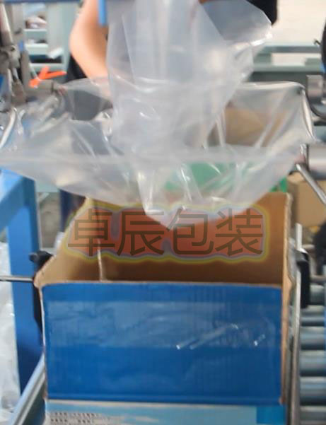 功能:在封好底部的紙箱上套上第二層塑料袋,不需要人工套袋,就可以完成自動。提高生產(chǎn)線的工作效率。